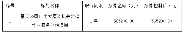 1、采購項(xiàng)目名稱:星天公司廣電大廈及機(jī)關(guān)院落物業(yè)服務(wù)外包項(xiàng)目
