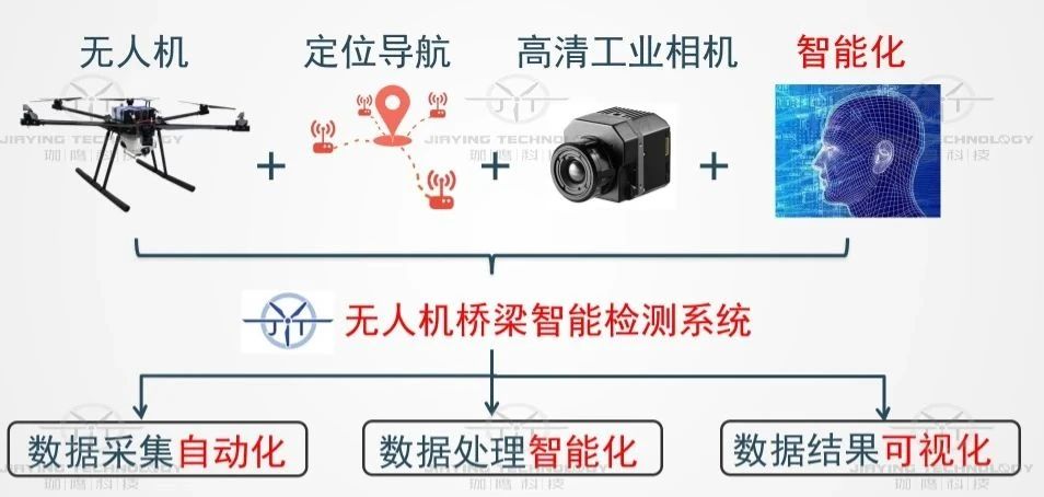 珈鷹科技結合政策要求,自主研發了基于AI視覺監測的無人機橋梁智能檢測系統,順應智能檢測設備精準、可靠、智能、集成的發展趨勢,打造適應智能制造發展的智能檢測體系。