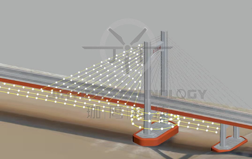 鰲江特大橋跨越鰲江口,主跨320米,主橋橋塔采用H型門式橋塔,索塔高為102.4米,相當40層樓高,全橋共有96根斜拉索。就結構特性而言,斜拉橋整體剛度遠小于連續剛構橋,因此通過智能檢測的手段收集病害信息至關重要。