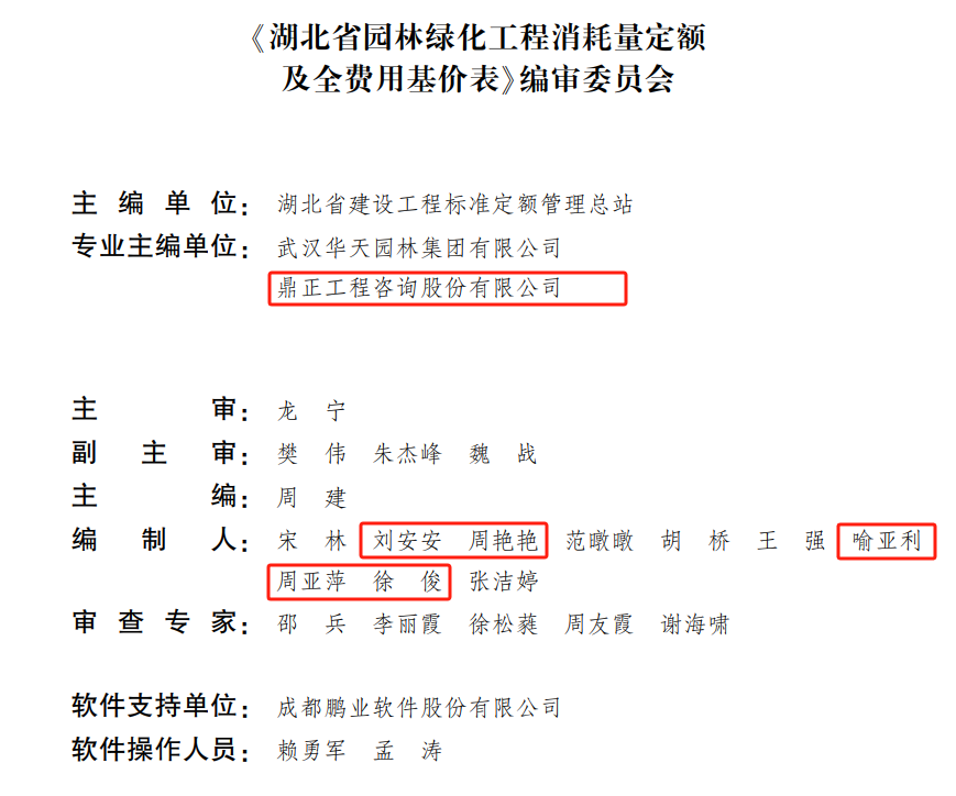 鼎正作為《湖北省園林綠化工程消耗量定額及全費用基價表》《湖北省建筑安裝工程費用定額》的參編單位之一,充分發(fā)揮全過程工程咨詢資源集中的優(yōu)勢,為此次定額的修訂貢獻了鼎正在全過程工程咨詢、工程造價咨詢業(yè)務領(lǐng)域編審設計概算、投資估算、工程預算、過程結(jié)算、竣工結(jié)算等實踐經(jīng)驗,對進一步完善工程造價計價依據(jù)體系提供了有力的技術(shù)支撐。