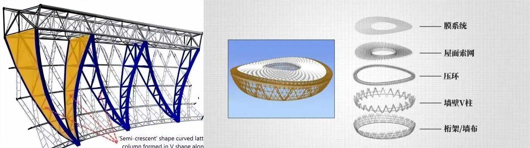盧賽爾體育館是全球最大跨度雙層交叉索網(wǎng)屋面單體建筑,并且有著世界上最復(fù)雜的索膜結(jié)構(gòu)體系,屋面索網(wǎng)結(jié)構(gòu)跨度達(dá)274米,鋼結(jié)構(gòu)高空吊裝最大的單體重達(dá)450噸,懸挑距離為76米,項(xiàng)目包含30多個(gè)專業(yè)大類,45個(gè)專項(xiàng)設(shè)計(jì),99個(gè)電子系統(tǒng),可以說(shuō)是目前為止專業(yè)接口最多、技術(shù)最先進(jìn)的體育場(chǎng)館。
