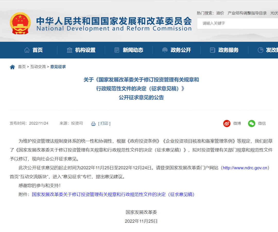 國家發展改革委關于修訂投資管理有關規章和行政規范性文件的決定
