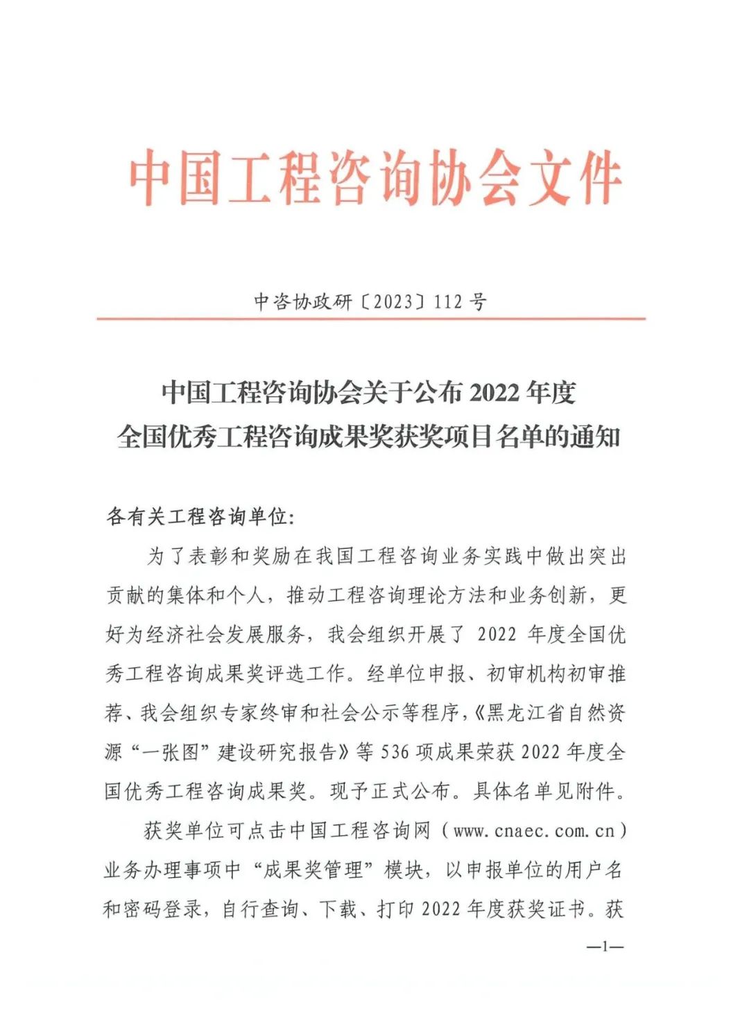 “全國優(yōu)秀工程咨詢成果獎”是中國工程咨詢協(xié)會組織的全國性咨詢成果評獎,旨在表彰和獎勵在我國工程咨詢業(yè)務實踐中做出突出貢獻的集體和個人,推動工程咨詢理論方法和業(yè)務創(chuàng)新,更好為經(jīng)濟社會發(fā)展服務。