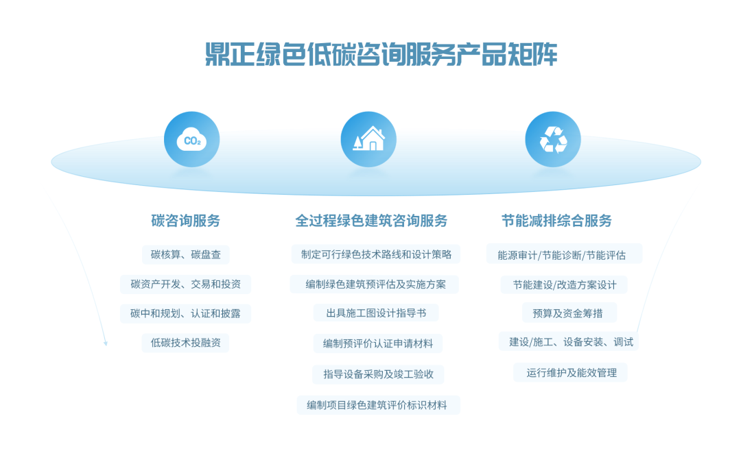 鼎故革新,正己守道。作為一家以創(chuàng)新驅(qū)動(dòng)變革的工程咨詢(xún)企業(yè),我們密切關(guān)注國(guó)家前沿動(dòng)態(tài),緊跟國(guó)家政策,不斷優(yōu)化產(chǎn)品結(jié)構(gòu)和服務(wù)模式。在“雙碳”目標(biāo)下,自2020起即針對(duì)工程領(lǐng)域的降碳、減排展開(kāi)探索,協(xié)助政府統(tǒng)籌區(qū)域能源消耗,為碳指標(biāo)交易及資產(chǎn)管理、綠色金融、政策法規(guī)等方面的規(guī)劃作出指導(dǎo),這為孵化綠色低碳咨詢(xún)產(chǎn)品矩陣打下堅(jiān)實(shí)的基礎(chǔ)。